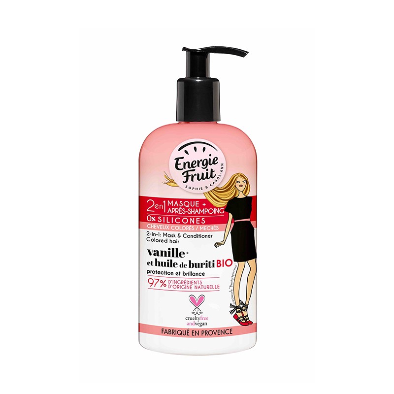 Mascarilla y acondicionador revolucionario 2 en 1, puede utilizarse como acondicionador si se deja actuar 30 segundos o como mascarilla altamente nutricional si se deja por 4 minutos. Su fórmula libre de siliconas está enriquecida con aceite de buriti orgánico proporcionando la cantidad justa de cuidado para el color.